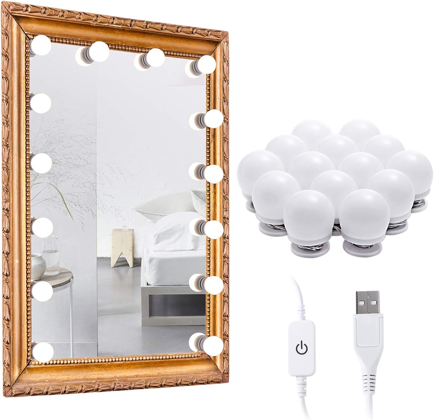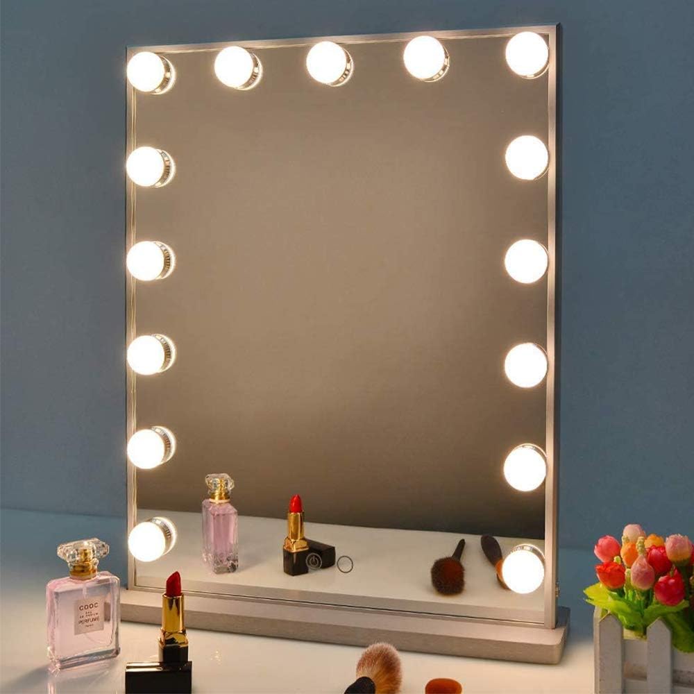 Dayu vanity makeup mirror with led lights for dressing table, large hollywood lighted cosmetic with 12 dimmable led bulbs for dressing room, multiple colour modes (w228 x h181 inch) white ouo lighted vanity mirror, hollywood makeup mirror, smart control mirror with 12 dimmable bulbs, tabletop beauty mirrors with usb outlet, 3 color lighting vanity lights for mirror. Sokea lighted makeup mirror dedicate to brings you a professional makeup experience;